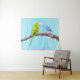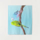 This Tapestry features two cute budgies in green and blue, sitting on a branch. Dgital painting on pale blue background. Beautiful for all bird lovers! Unique wall decor, also a great gift idea.