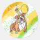 Cute hand drawn cartoon bulldog green and yellow birthday stickers.