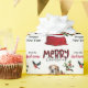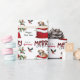 The repeated pattern on this cute Christmas wrapping paper is an image of an adorable Bulldog puppy peeking out from a red and white Holiday gift bag. Behind him is a sprig of holly and red berries. A red and black bullfinch bird is about to land. Stylised red and black buffalo plaid text says MERRY CHRISTMAS", and "Happy New Year" is in dark green. Your own signature is in two fields for you to customise. Be sure to see the matching gift tags.