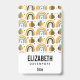 Personalised name badge with a cute patterned background. Whimsical bees and rainbows with little hearts and stars scattered around. Adorable and delightful.