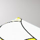 A big yellow and black bumble bee with a bee pattern with some flowers, hearts, swirls, twirls, and bee trails.
