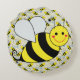 A big yellow and black bumble bee with a bee pattern with some flowers, hearts, swirls, twirls, and bee trails.