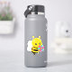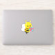This is a cute bumble bee themed sticker with a pink and blue flower. The background is white. Order yours today!