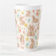 Cute Bunnies and Flowers Pattern Latte Mug. Pattern featuring sweet bunnies and delicate spring flowers. Perfect for Easter celebrations, baby showers, nurseries, or simply adding a touch of whimsical cuteness to your everyday items. This soft, pastel design brings joy and warmth, making it ideal for gifts for animal lovers, new parents, or a lovely way to celebrate spring.