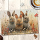 Puzzle featuring three cute bunnies in a floral country scene. This adorable rabbit painting is also beautiful as an Easter entertainment activity or gift.