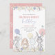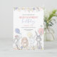 This beautiful birthday invitation features cute bunnies and is perfect for an Easter birthday party. All details including the age is customisable while matching party items are also available.
