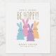 Simple Easter personalised wine bottle label featuring cute bunnies in pastel rainbow colours and fun typography. Perfect for Easter/spring party favour or Easter gifts. Customise with short greeting and name.