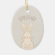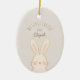 Cute bunnies personalised Easter ceramic ornament in beige and gold. Comes with front and back design. Simple, sweet and classy. Customise with name, occasion and year. Perfect first Easter gift for baby.