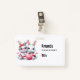 Name tag with an illustration featuring 2 white furry bunnies sharing a big pink heart. The girl bunny is wearing a cute bow on her head and heart-shaped glasses. The boy bunny is wearing an adorable little suit with a tie.