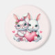 Magnet with an illustration featuring 2 white furry bunnies sharing a big pink heart. The girl bunny is wearing a cute bow on her head and heart-shaped glasses. The boy bunny is wearing an adorable little suit with a tie.