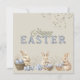 This charming "Happy Easter" card features adorable bunnies preparing for the season with delicate toile blue Easter eggs nestled in their baskets. The soft, pastel colors and vintage-inspired design make it the perfect way to spread Easter cheer. The customizable text on the back allows you to add a personal touch, making it ideal for family and friends. Whether you're sending warm Easter wishes or celebrating with loved ones, this card captures the sweetness of springtime and the joy of the holiday.