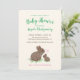 Invite your guests with these adorable, hand-painted mama and baby cottontail bunny rabbits sitting in a patch of clover while emitting cute floating pink hearts between them! The words "Baby Shower" and the name of the mother-to-be are in green text to match the clover patch. On the back of the invitation is a cute pink heart pattern. Shown here with an ivory coloured background which you can easily change to your favourite colour. If you need help or matching items, please contact me.