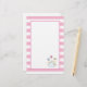 Stationery with a pink and white striped background. A white frame with a pink border layered over top for you to write inside. Inside the frame an illustration a mum and baby bunny standing together. Yellow daisies in the background. Whimsical butterflies fluttering about.