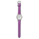 A child's watch with a mum and baby bunny standing together. Yellow daisies in the background. Whimsical butterflies fluttering about. Art deco style clock face.