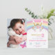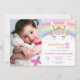 Cute Bunny 1st Birthday Girls Rainbow Rabbit Photo Invitation