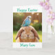 Cute Bunny and Blue Budge Personalized Easter Card