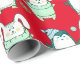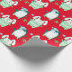 CUTE BUNNY AND PENGUIN RED CHRISTMAS GIFT WRAPPING PAPER