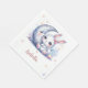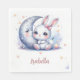 Super cute napkin featuring a cute white little bunny wearing a beautiful pink bow sitting in front of a lovely moon with some gold falling stars.