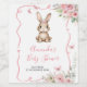 Cute Bunny Baby Shower Girl Pink Floral Wine Label