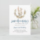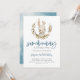 Cute bunny theme boy's birthday party invitation card featuring watercolor illustration of a rabbit with greenery and blue floral wreath. The text says "somebunny is turning X."