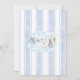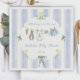 This cute baby bunny clothesline theme features a custom hand-painted frame of a crisp blue vertical stripe pattern accented with a lush greenery wreath, creating a clean, classic, and welcoming look. A sweet watercolor clothesline is strung across the center, proudly displaying tiny, adorable items, each featuring a cute bunny dressed in blue. The scene is completed with a darling blue bow holding a bunch of fresh carrots, and bright, cheerful daffodils, all rendered in a soft watercolor style. Easily add your own details and change the font style, size color and placement if you would like to.