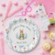 Cute Bunny Boy Floral Blue Bow Baby Shower Paper Plate
