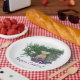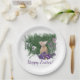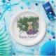 These colourful Easter Holiday greetings paper plates feature a delightful colour rendering of a cute bunny in purple flowers with the greeting "Happy Easter!"