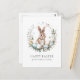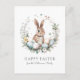 Send heartfelt Easter wishes with this beautifully designed Easter holiday greeting postcard, featuring a charming brown bunny nestled in an Easter-themed wreath of pastel-coloured eggs, delicate florals, and lush greenery. Soft watercolor splashes add an artistic touch, enhancing the whimsical, springtime feel.