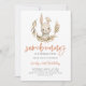 Cute bunny theme girl's birthday party invitation card featuring watercolor illustration of a rabbit with greenery and pink floral wreath. The text says "somebunny is turning X."