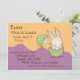 Adorable grey bunny hopping out of a green decorated egg. Light orange and purple background. Fun for Easter, Ostara, and spring festivals. Look for matching products!