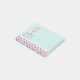 Baby shower sticky notes with a whimsical white bunny holding a big pink balloon floating up in the air. Pink polka dot circles create a cute and charming border. Set on a light blue-green background.