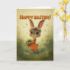 Cute Bunny in Orange Dress with Easter Basket Card
