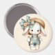 Cute Bunny in Overalls with Straw Hat & Bow Magnet