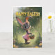 This sweet Easter card features an adorable baby bunny in a pink lace dress, wearing a floral crown and carrying a basket of colorful eggs. Set along a glowing garden path with fluttering butterflies and soft spring flowers, the artwork blends whimsical charm with a polished finish. Perfect for kids, families, and anyone who loves heartwarming, magical Easter designs. Printed on premium cardstock for a beautiful seasonal keepsake.