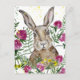 Cute bunny in watercolour flowers postcard