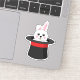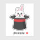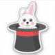 An illustration of a cute white bunny peeping on the black wizard hat with red accent. This adorable white rabbit design is a gift idea for magic lovers, magicians, rabbit lovers, fur mum, fur dad, pet lovers and animal lovers.