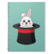 An illustration of a cute white bunny peeping on the black wizard hat with red accent. This adorable white rabbit design is a gift idea for magic lovers, magicians, rabbit lovers, fur mum, fur dad, pet lovers and animal lovers.