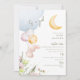 Cute Bunny It's a Girl Baby Shower invitation. It's a Girl! Moon. Flowers. Rectangle.