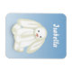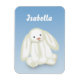 Lovely beautiful cartoon illustration for kids featuring a cute white bunny with floppy big ears on a light blue background. Customise and personalise this product with your desired Name or leave it blank.