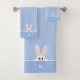 Cute Bunny & Monogram on Light Blue Bath Towel Set