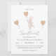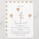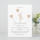 Sweet first birthday party invitation features a cute bunny with heart balloons and "our little sweetheart is turning one" text, perfect for a February or Valentine birthday, but also adorable for any time of the year! Trendy script and neutral and blush pink watercolor elements add a modern style to the pretty birthday celebration card, and the back is a chic heart pattern.