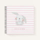 NewParkLane - Personalised Notebook, with a cute bunny in watercolor, with your name or other personal text, against a blush pink striped background.