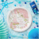 A cute baby girl bunny in a pink dress stands on a garden chair holding a floral patterned umbrella with pretty summer flowers cascading from it and more floal motifs and leaves decorate the scene! Easily personalise with your name.
