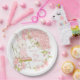 Cute Bunny Pink Florals Girl Baby Shower Paper Plate