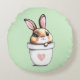 Cute Bunny Plant Pot on Light Lime Green Round Cushion