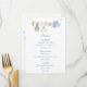 The menu features a sweet watercolor clothesline strung across the top proudly displaying tiny, adorable items, each featuring a cute bunny dressed in blue in a soft watercolor style. The back features the clothesline motif and a soft cloud. Easily add your own details and change the font style, size color and placement if you would like to. This menu is a beautiful detail, inviting your guests to share in the "hoppy" anticipation of your baby boy's arrival!