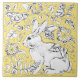 Cute Bunny Rabbit Drawing on Yellow, Bird Floral Tile