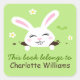 Cute custom bookplate stickers / book labels stickers featuring a cartoon illustration of a little white rabbit looking out of a hole in the ground. Customisable name and text "This book belongs to". The text can for example be changed to "From the library of" or made into general property labels. Cute design for kids, great for labelling school books.