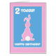 A fun birthday card for a Two-year-old, with a pink check cute bunny rabbit on a blue background with a pink border and '2 today - Happy Birthday' in white lettering. Please feel free to personalise the inside message.