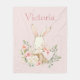 Cute Bunny Rabbit Personalised Modern Pink Fleece Blanket